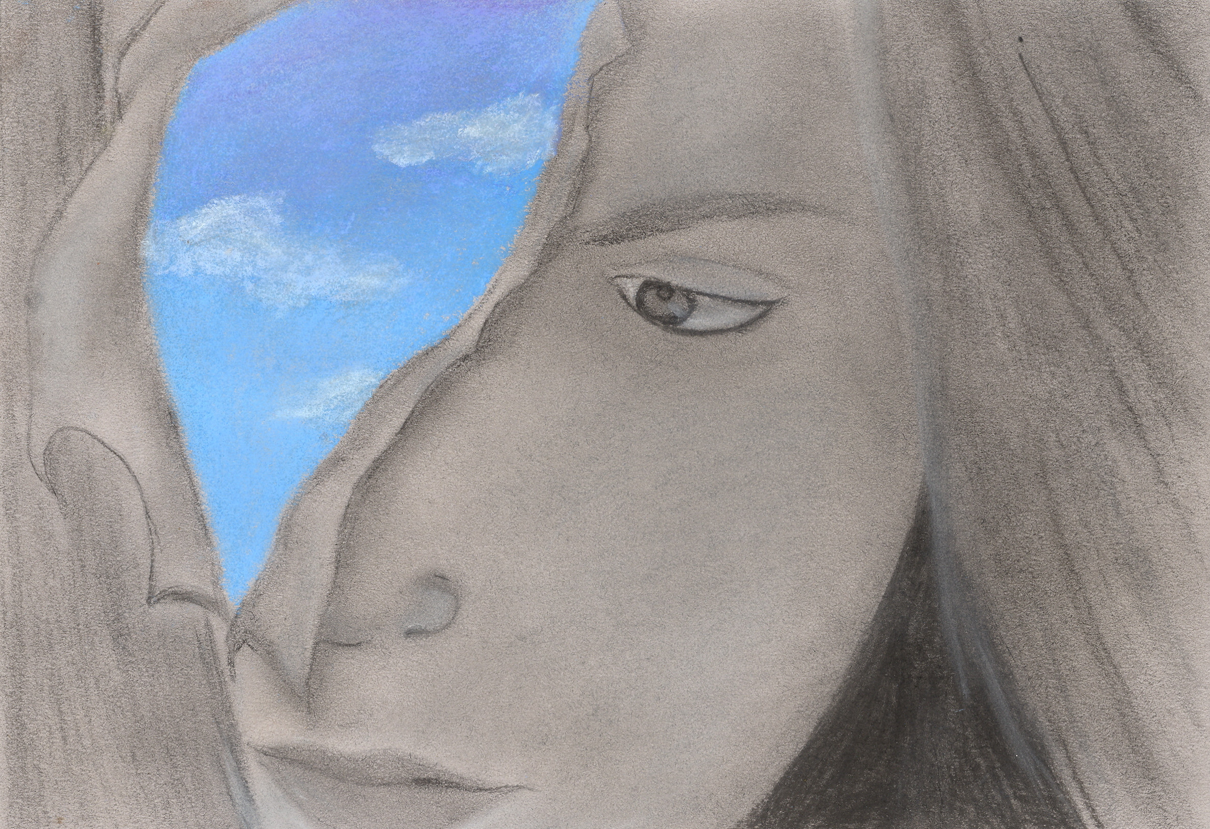 Drawn with charcoal and pastel. I love how it came out! It looks better in real life, though. If you've seen my MySpace account, you know what photo this is from.