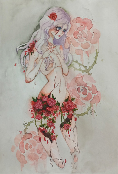 My favourite parts have to be the hands and white hair. I have such a thing for white hair, and I am so bad at drawing good hands like yours. I also like the dotted effect on her skin.