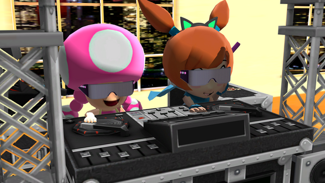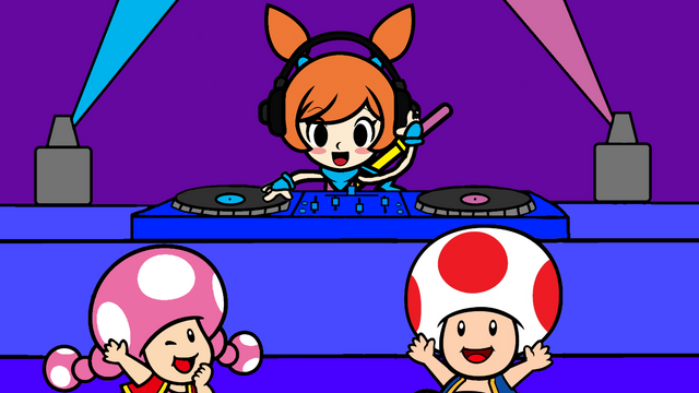 We're back for more Rythem Heaven stuff and this Toadette is now teaching Ana how to be a DJ in DJ School but it's the class ever.This is from Rythem Heaven and Warioware.