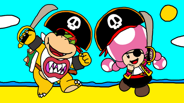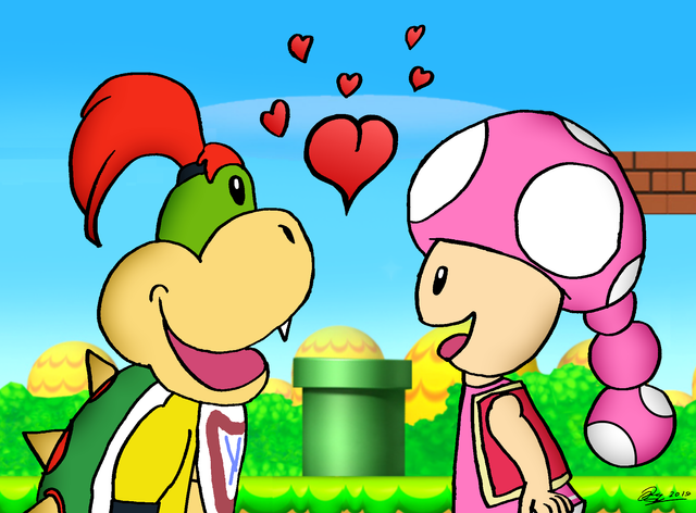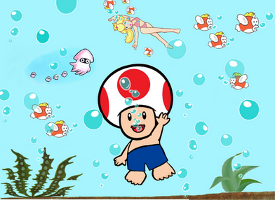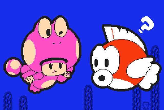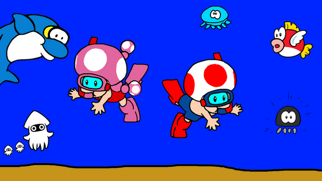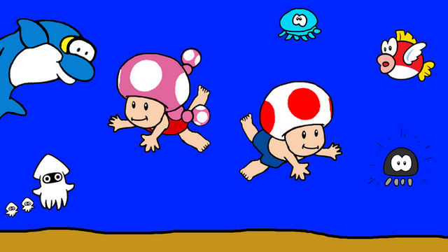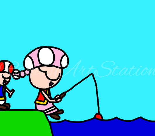 Toad and Toadette are going fishing.This is from Super Mario & Nintendo.