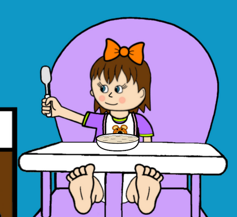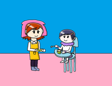Baby Hannah is feeding her cousin Baby Ana some baby food.Related content