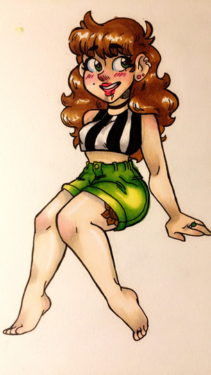 #curvy #curvygirl #cute #cutegirl #freckles #originalcharacter #pen #purpleeyes #redhairedgirl #redhead #traditional #traditionalart #traditionaldrawing #wavyhair #wavyhairedgirl #widehips #thickthighs #frecklesgirl #thickandcurvy