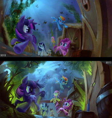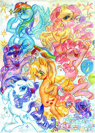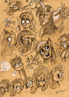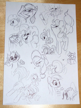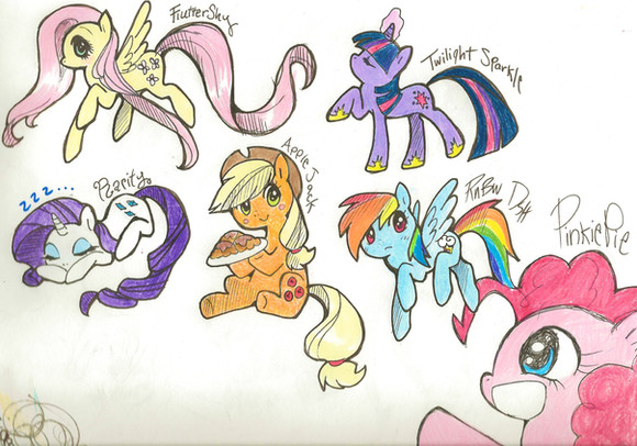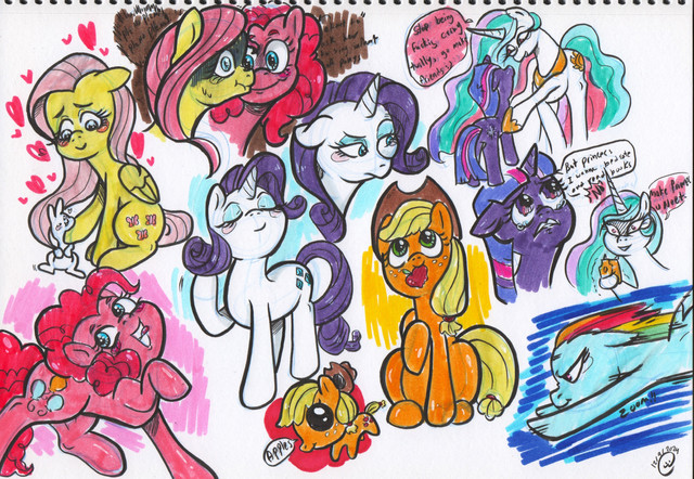 Um yeah, just randomness and stuff. Nothing particularly special although I do want to see fluttershy eat animals and Twilight fire lazers from her eyes!And oh, if you're wondering why there are dented mark on the paper, that's my little sister's drawing on the other side ^_^.
