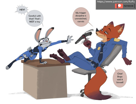 LOL I love the banter between these two xDDD good thing Judy's wearing those boots. the glass from that coffee cup coulda cut her lovely footpaw D: though her toes are gonna be stained from the coffee xD