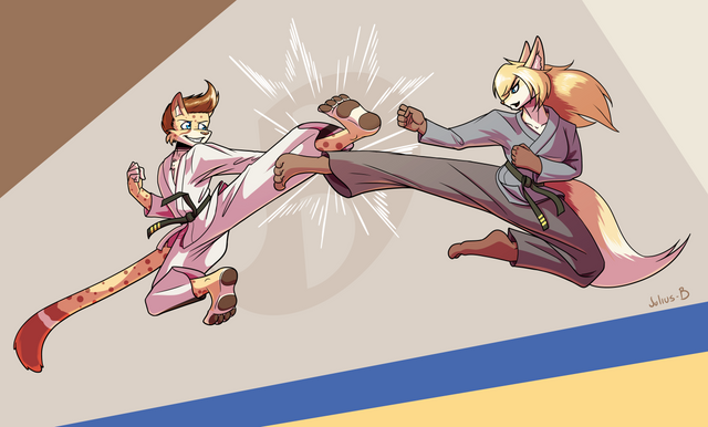 #anthropomorphic #conceptart #digitaldrawing #digitalpainting #drawing #fighting #furry #illustration #lion #serval #visualdevelopment #stylizedart #art #pepperinthesandbox
