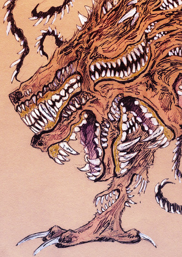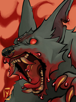 #angry #blood #canine #demon #feral #halloween #horror #hound #monster #oc #red #sketch #snarling #teeth #tyzer #wolves #bloodborne #beast #lycan #lycanthropy #werewolf #werewolves #wolf