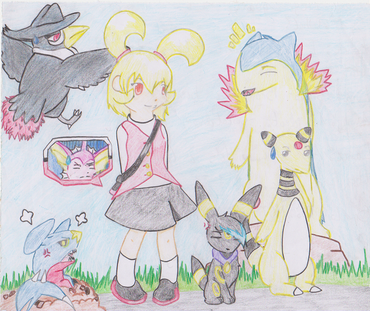 Goals: She’s not interested in being a Champion Trainer or Coordinator. Her ultimate goal is to obtain all badges and ribbons of all the regions. She also has a goal to have a glance at all legendary pokemon, or even touch one.