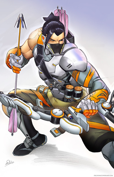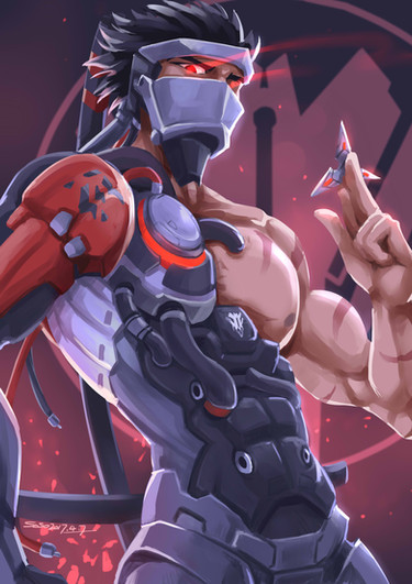 I used read comic they said the mask sometime is(superhero's)face,even if hanzo not a really hero is ...but i guess that is meaningfully to him,so i drew him without mask but shielded his face.