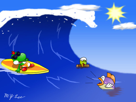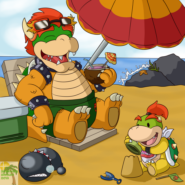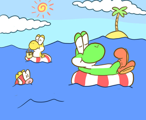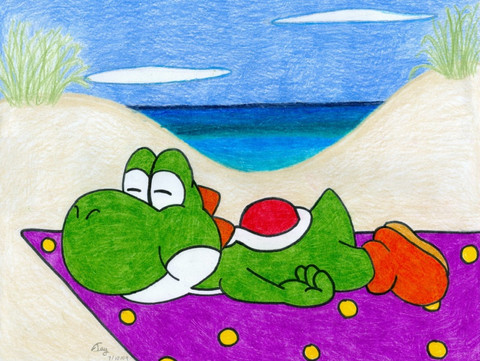 #beach #clouds #koopa #sea #umbrella #yoshi #ruisunin #koopatroopa #supermario #traditionalart