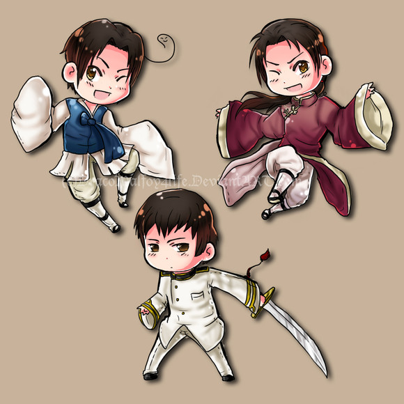 So cute so cute so cute so cutee <333 China looks the cutest XD but my favourite Asian country from APH will always be Korea XD