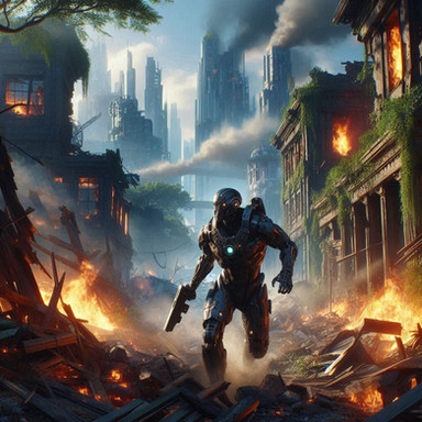#actionhero #cinematic #cyberninja #cyborg #dystopia #freedom #ninja #science #scifi #violent #characterart #digitalart #explosions #movie #musicinspired #sciencefiction #citydestruction