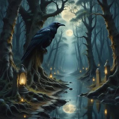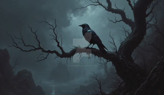 #digitalart #magic #fantasyart #forest #fog #ai #dreamup #digitalpainting #horror #wallpaper #gothic #bird #spirit #characterdesign #warrior #raven #thecrow #ai_art