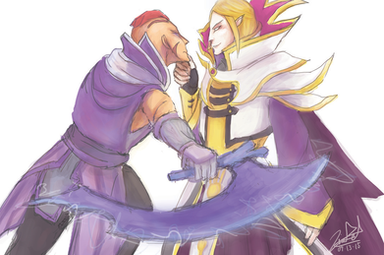“Soon, brother… soon you shall realize what it means to hold the power of the Void in the palm of your hand. Eventually, you shall submit to its calling. You cannot resist temptation forever…”Made myself finish something for once. uvu I just like drawing these two having a spat and adding a lame quote to it I guess, not that it's a rare thing, but whatever. Malz is always preaching to Kass and trying to get him to join the Void's cause, but it's not working, as usual :v shocking