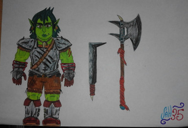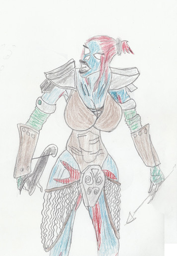 #angry #barbarian #green #orc #scars #woman #aiers #coloredpencils #comic #fantasy #hook #pegleg