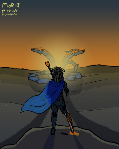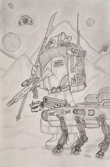 #badlands #coloredpencil #desert #drone #human #male #mechanical #mod #robot #wasteland #dwarffortress #walkermech #thelongnight #gaming #postapocalyptic #gamingfanart