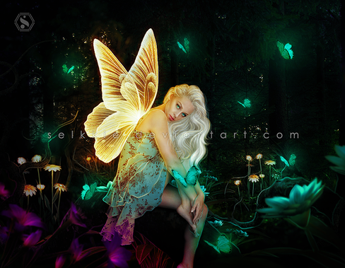 #fairy #lake #night #fairyears #butterflies #fairywings #fantasy #fireflies #lantern #lilies #photomanipulation