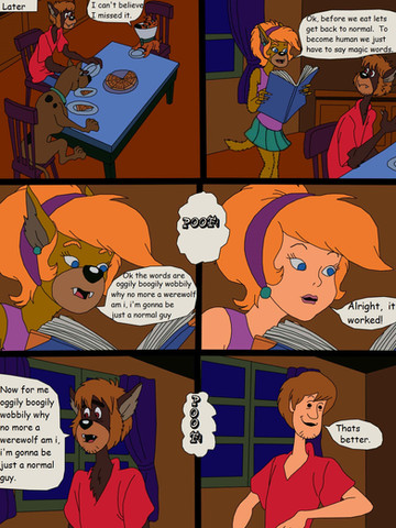 "Daphne Blake turning into a dog after she tries a box of (tainted) Scooby Snacks. She doesn't really notice (or care) that her clothes are wrecked since she also is starting to think that she was always a dog, like Scooby, who's owned by Shaggy."