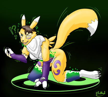 " My friends fursona, Xavier, fighting off goo that has crawled up his body and is turning him into a renamon with curvy yet reasonable hips "