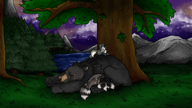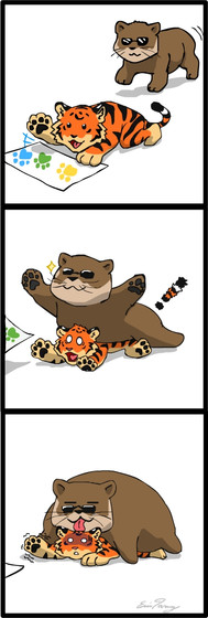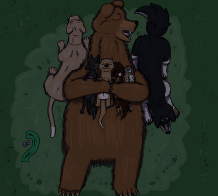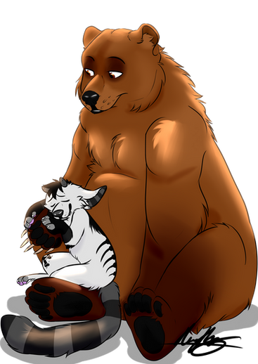 A Giftart for a Friend.A friend of mine a while ago once mentioned that he had 2 cats just lounging on his back, and so he had 30 pounds of cat on his back. I thought it was funny so this image was inspired.