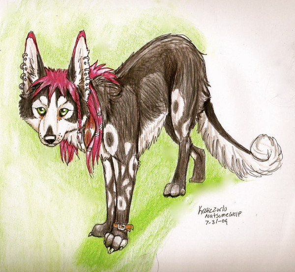 I've had this up on FurAffinity for a couple months and I realized I'd like it here too, I need more art here. I have not used prisma in years...I bought a sketchbook with recycled paper that's brown so that I can force myself to do some colored pencil work. Just a practice doodle.This little Klee Kai, Rupee, copyright to me and all that. Woot.