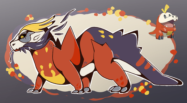 The original prompt was: "Maybe a dark/fire type crocodile skink fakemon? The source of its fire comes from its bright orange eyes."