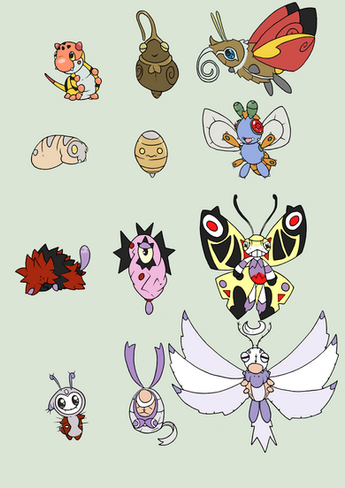 Kissant - bug type based on honeypot ants. This was originally gonna be fairy type since it’s support. It basically heals it’s charges by kissing them and transferring it’s fermenting honey in their mouth. It’s butt was suppose to look like those cliche moonshine jugs, but it looks more like a pastry.