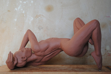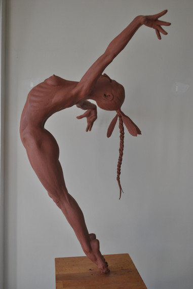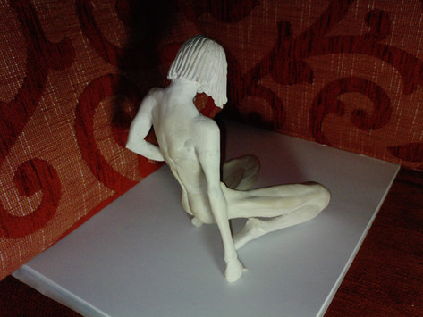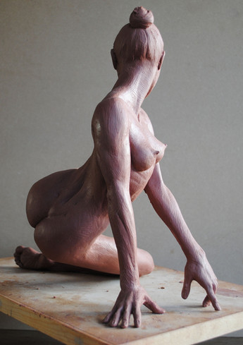 It is modelled in chevant. I hate using it as it is so unresponsive, give me real clay anytime but I quite like to leave a sculpture out while i am working on it so that I can constantly view it.