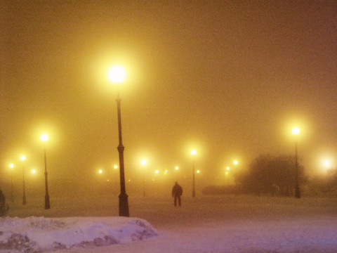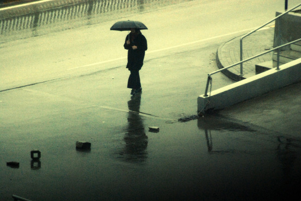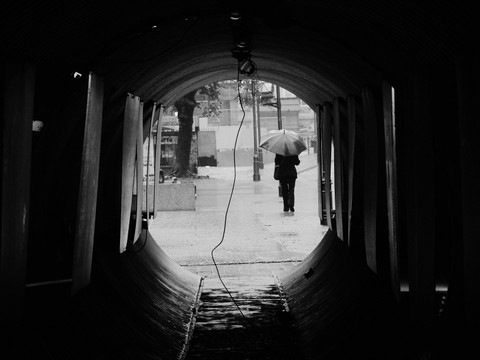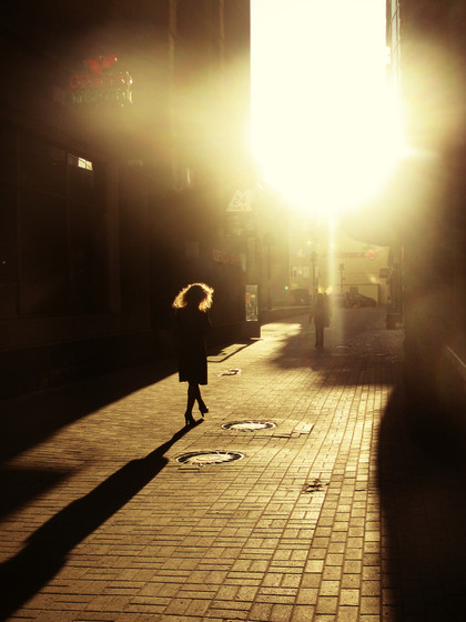 Great shot, I really like the back-lit silhouette and the leading lines from the foreground.