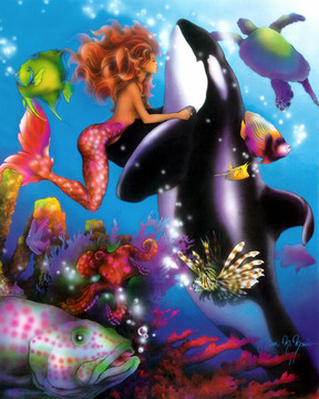 Wow so beautiful and I love the whale and her riding it very pretty ^^