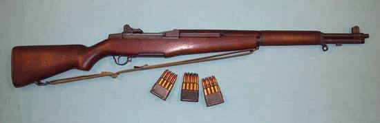 Four consecutive generations of U.S. military service rifles.Top to Bottom: