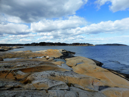 #blue #clouds #dry #grass #landscapescenery #ocean #rocks