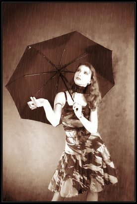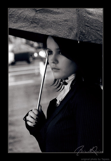 Mmm supernatural...some people believe in luck, fate, karma, whatever you called it. I believe this image seen to bad luck use umbrella inside house...everything black on her...it seen should called it "Supernatural Rain"