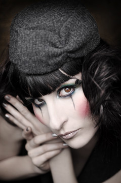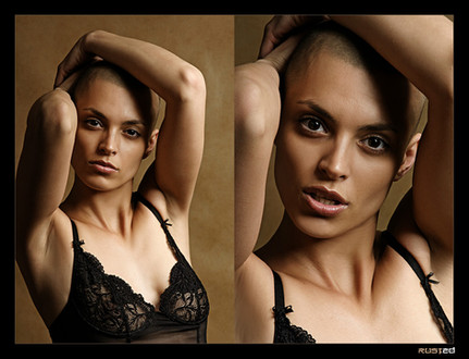 I like how the makeup and the runs in the shirt turn the image from what could be a softer image to a much stronger image without changing her feminitiy.