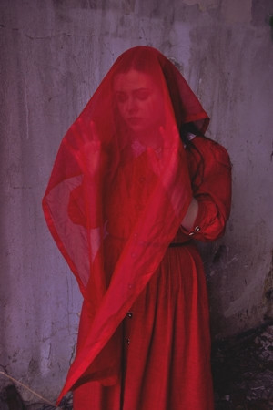 Beautiful!! The contrast between aquamarine green and red is great and the model is so beautiful!
