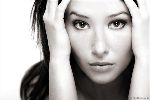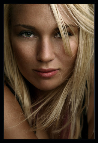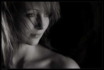 First time I see this model, she's gorgeous! I like the way she looks at the camera, her eyes and lips. But the photographer also has its merit, it's a great composition, a very sharp image with excelent light distribution and contrasts. Really nice work.