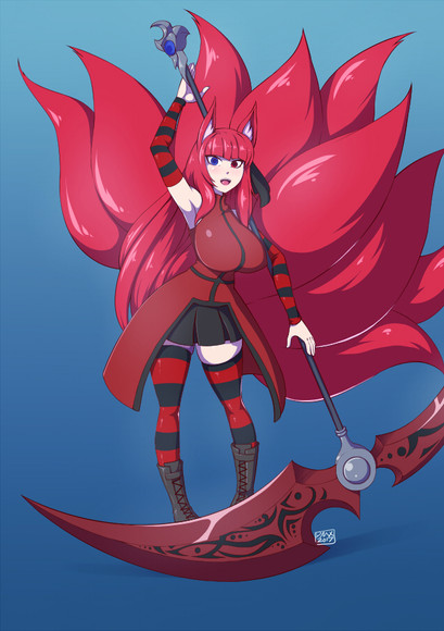 That be one bad ass yet lovely and awesome fox lady. >//w//< Nice work on this. :3