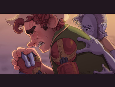 A screencap redraw of that scene in "Treasure Planet" where Jimbo is hiding from Scroop and the rest of the pirates in the purp barrel.Related content