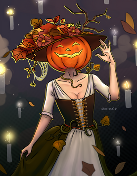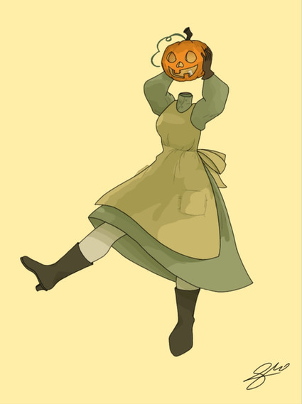 #rachelmasky #fanartdigital #pumpkinhead #historicalfashion #pumpkingirl #pumpkinheadgirl #procreateart #halloween2021