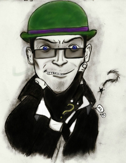 I love how he's pressed up against a window or something in this. It's very vibrant and full of life which can be lacking in some of the Riddler works that simply copy poses from the game and comics. I also epsecially love your shading and for some reason the hat