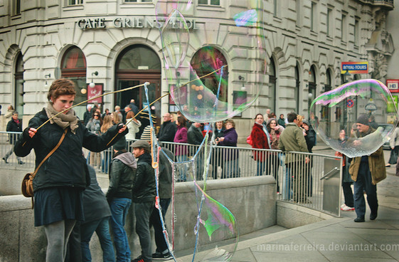 Fun fact about this photo: When I took this, I was mostly paying attention to the bubbles and the people looking at them. Later I realized that the most interesting face was the one I first ignored, the man with the yellow shirt. He looks so worried and occupied with his thoughts. Every time I look at this photo I just wonder what was he thinking in that very moment. It makes me think how the worried/sad people in this world are so often invisible to the rest.Location: Camden Town, UK