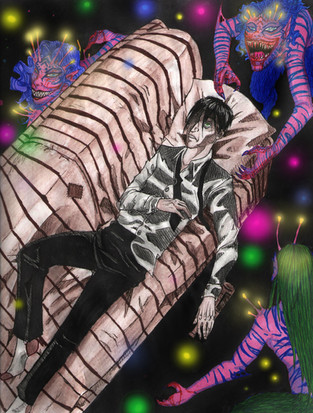 Ironically, he has no idea the lady on top of him is also a vampyre. Go figure.