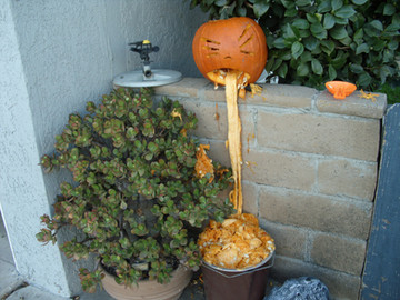 Another year, another Barfing Cyclops Pumpkin...This one isn't for Halloween this year though. There's a pumpkin carving contest for the Fine Arts majors this year, and I intend to enter and win! That's why this one has no candle and is carved well before October 31st. It's going to be vomiting its way all over George Mason University! Not only that, but it's going to win me an iPOD Scrambler, even though I don't know what one of those is.