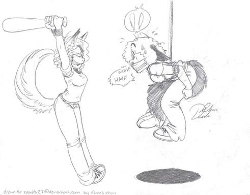 ex. "Id like my two characters [ref] [otherref] to be ballroom dancing in ballerina clothes and platform boots."