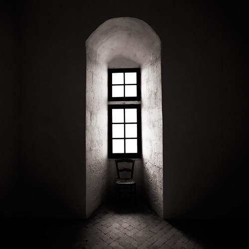 way the light falls from the window is amazing. i love how the solitude is highlighted... one chair, one window, simple light and darkness all around. beautiful.