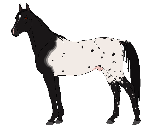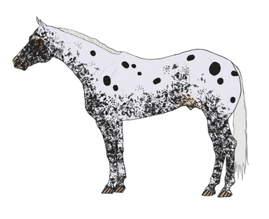Markings: White blanket with black freckles, a faded white muzzle and a faded white marking behind his left shoulder