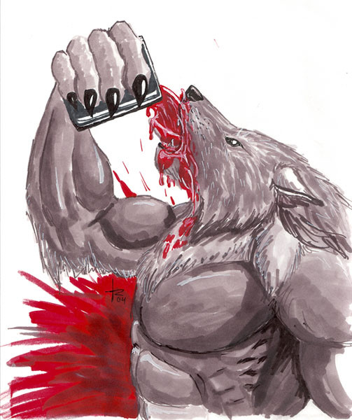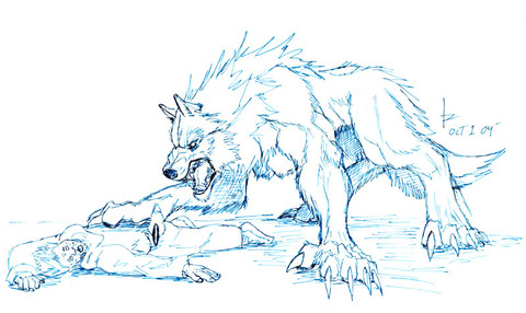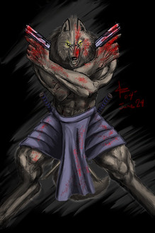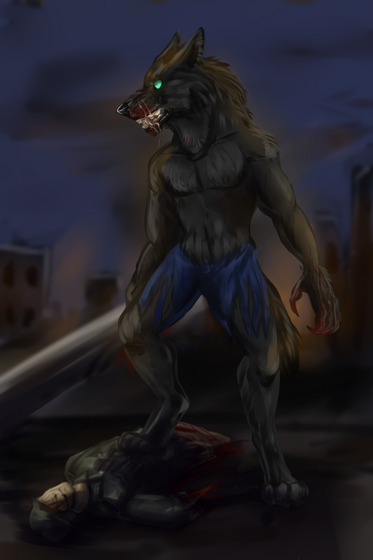 Ah my Werewolf Character (which I haven't drawn in over a year) I think it's long overdoo for him for some bloodand Happy Halloween