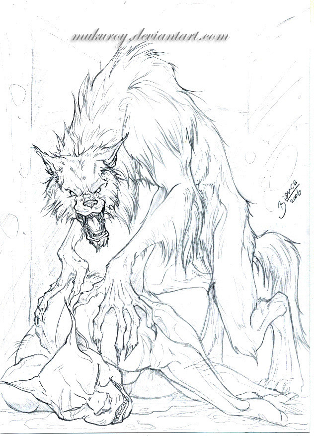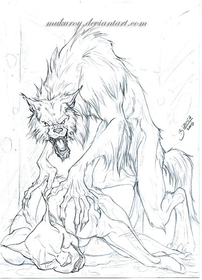 This is increadible! I love the werewolf's anatomy. Her arms/legs, her haunches, and her hands/paws/claws are beautifully drawn. Very inspiring!