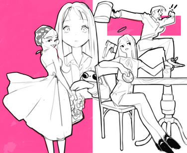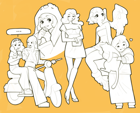 concept art for a little bakery that also sells hot drinks to the side! seems busy today, doesn't it?had loads of fun illustrating this ♡