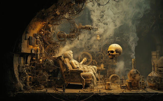 #horror #digitalart #apocalyptic #magic #fantasyart #surreal #gothic #ai #architecture #candle #collapsing #contemplation #deformity #dust #fog #ghost #light #monster #ruins #shadow #skeleton #smoke #undead #zombie #dall_e3