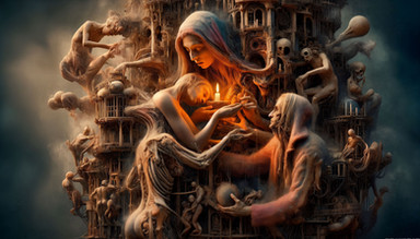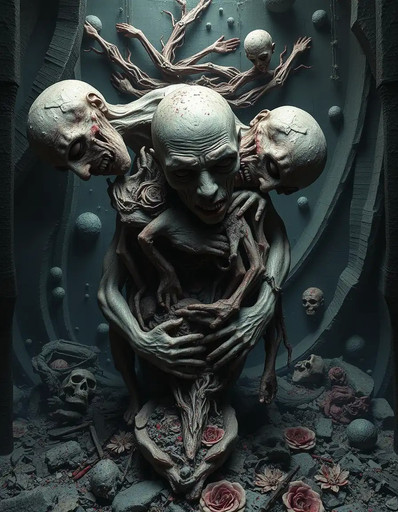 #horror #conceptart #surreal #macabre #portrait #architecture #ai #candle #collapsing #contemplation #deformity #dust #fog #ghost #light #monster #ruins #shadow #skeleton #smoke #undead #zombie #dall_e3